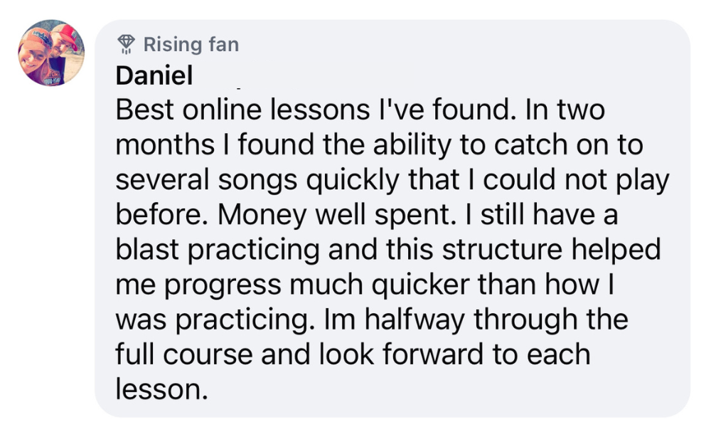 That experience taught me how to explain things clearly, meet learners where they are, and build lessons that actually connect. Bringing those same principles into the digital space has allowed me to help guitar players of all ages make steady, lasting progress, no matter their starting point.