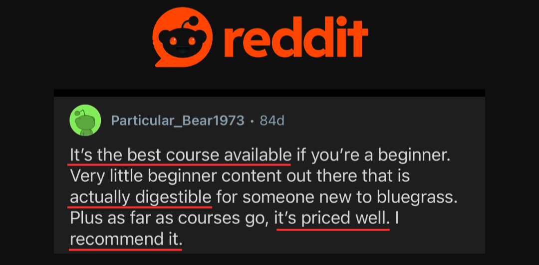 ✔️ Helped hundreds of players learn bluegrass guitar since launching in October 2024